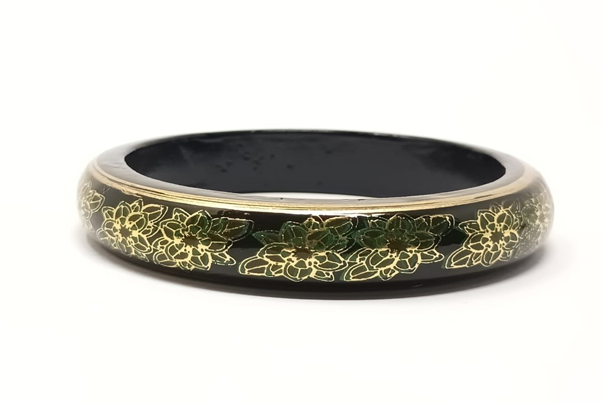 An eye catching wonderful design bangle, crafted by artisans of Kashmir, India. This unique handicraft is an all occasion gift to add grace to any outfit. Thickness: 1/2 Inch Diameter: 2.5 Inch Weight: 25 g Per Bangle