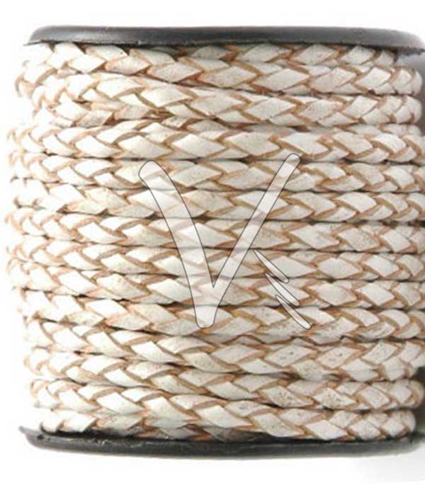 Leather Bolo Cord - White-Brown - Sizes Avl : 3.0 mm to 8.0 mm