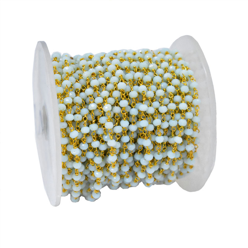Rondlle Glass Bead Chain --- Bead Size : 3mm ( Apoorx ) --- Chain Color : Gold --- Chian Materail - Copper --- Packing : 5 Mtr Spool