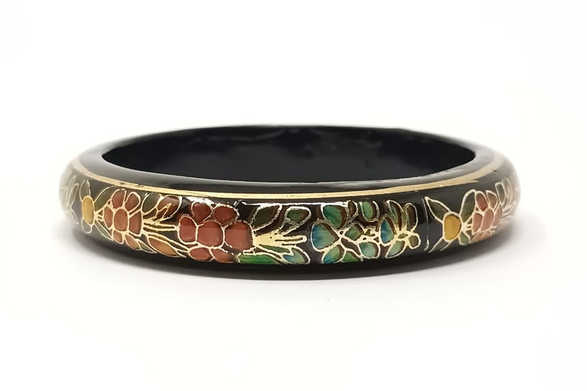 An eye catching wonderful design bangle, crafted by artisans of Kashmir, India. This unique handicraft is an all occasion gift to add grace to any outfit. Thickness: 1/2 Inch Diameter: 2.5 Inch Weight: 25 g Per Bangle