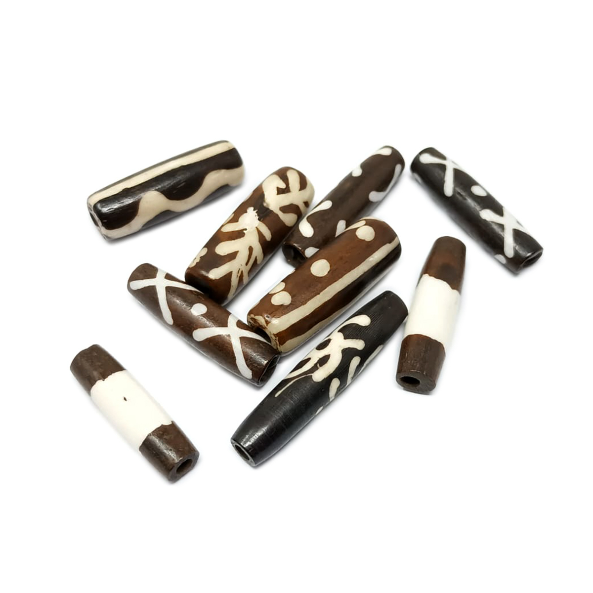 Batik Print Bone Beads Mix - Brown Color - 30g Pkt